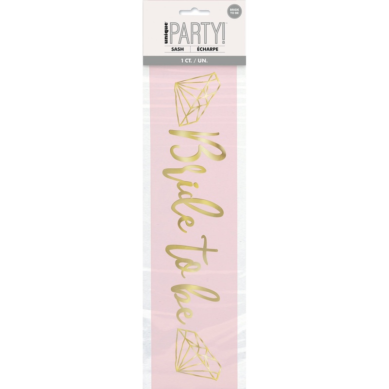 Pink Diamond Bride to Be Party Sash with Gold Accent 30in