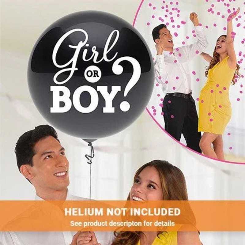 This balloon is an enjoyable way to learn the gender of your new baby! The Black latex balloon has the phrase “Girl or Boy” in white and comes with pink confetti. Have someone fill it with confetti and helium, then pop the balloon to reveal your baby’s gender.