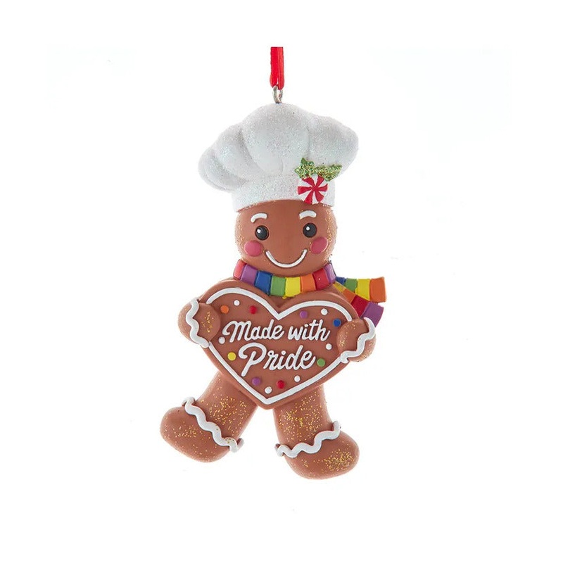 Celebrate love and inclusivity this holiday season with Kurt Adler's Pride Gingerbread Chef Ornament. This charming ornament features a delightful gingerbread chef adorned with vibrant rainbow accents, symbolizing pride and unity. With intricate detailing,