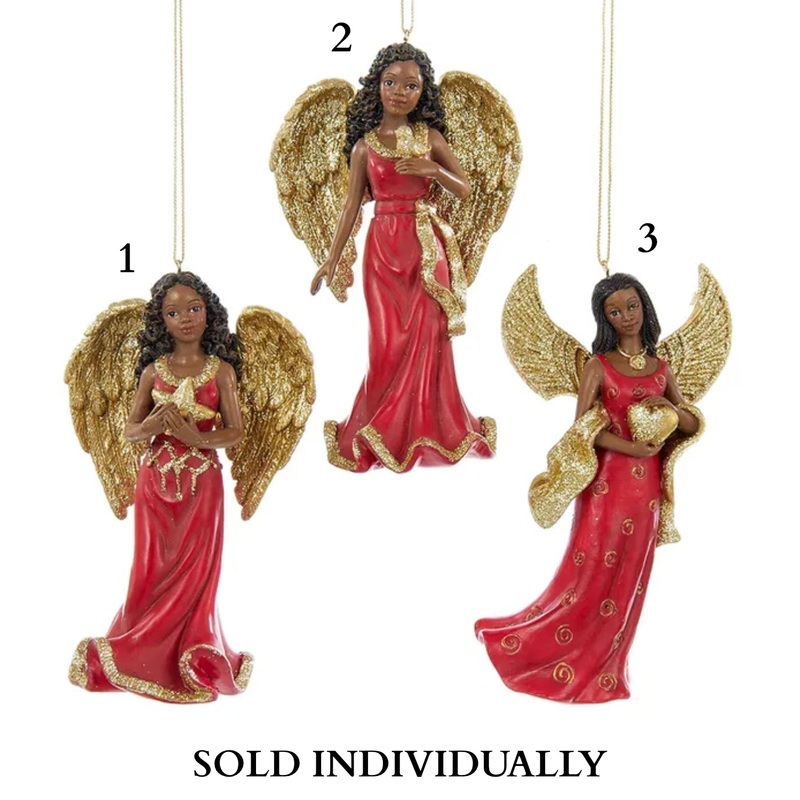 Red and Gold African American Angel Ornaments (3 Styles Sold individually)