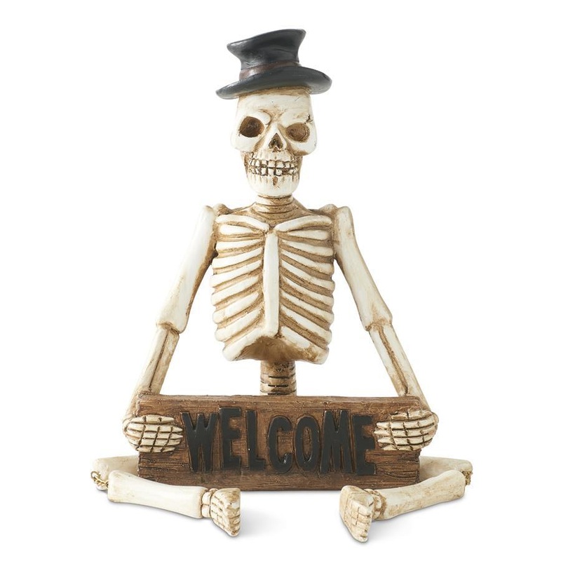 Resin Skeleton Man Shelf Sitter w/Welcome Sign, 17.5