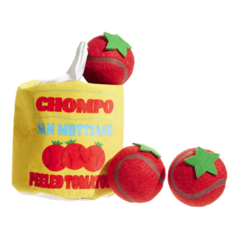 Your pup can hit the sauce hard with this multi-part toy. Dig into the crazy crinkle can (a paw-opener usually works best) and pour out the three squeaky tennis balls. Throw them for a game of fetch, or give them a roll and watch your dog try to ketchup. T