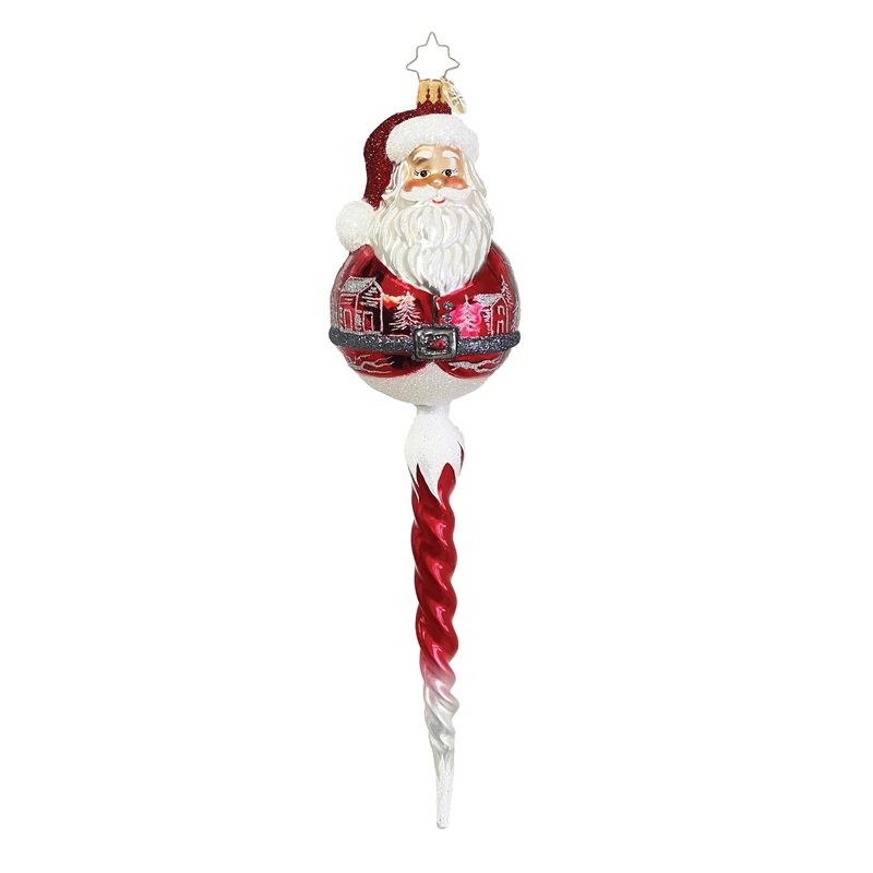 This frosty friend is here to spread holiday cheer! Santa, a jolly figure, is adorned in a sparkling red and silver jacket, ready to bring joy to all. With its twinkling icicles and snowy scene, this festive ornament is sure to become a treasured keepsake.
