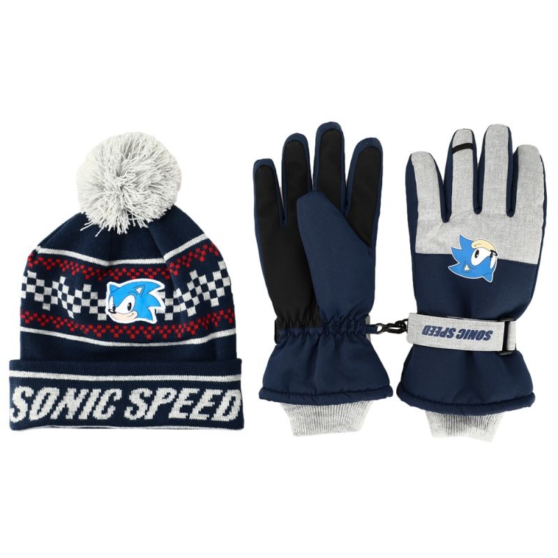 DZ6366984767Sega – Sonic -Tthe Hedgehog Youth Beanie and Ski Glove Set
