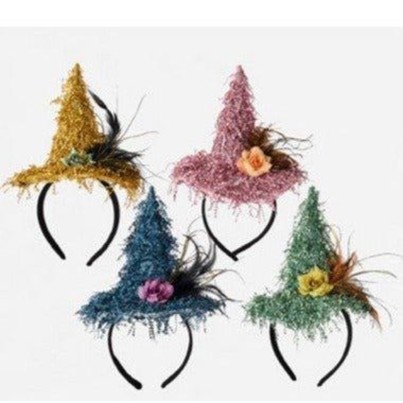 Stand out wearing this adorable shaggy witch hat headband.comes in 4 different colors1 headband per package