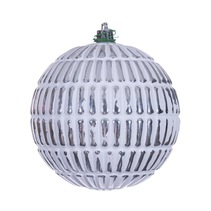 PU6042829079Shatterproof Gold Etch Line White Brush Matte Ball Ornament, 4 (100MM)