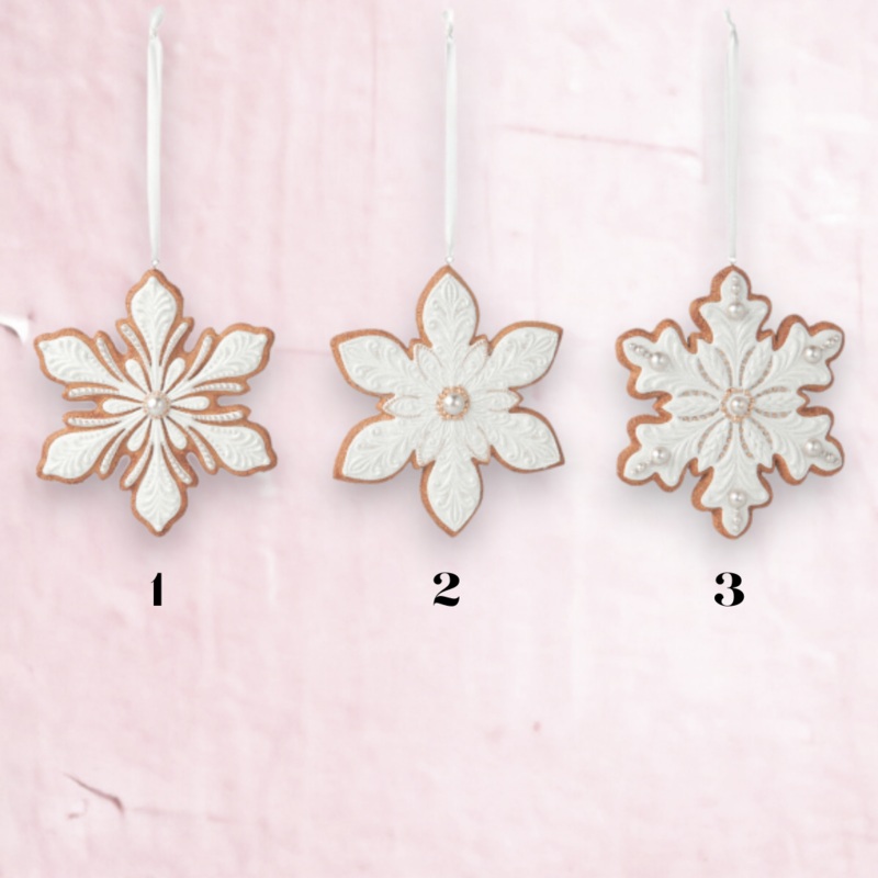 This Snowflake Cookie Ornament is the perfect holiday treat! Show off your baking skills with this pearl-adorned delicious decoration - the tastiest way to get into the holiday spirit! Choose from one of three styles.