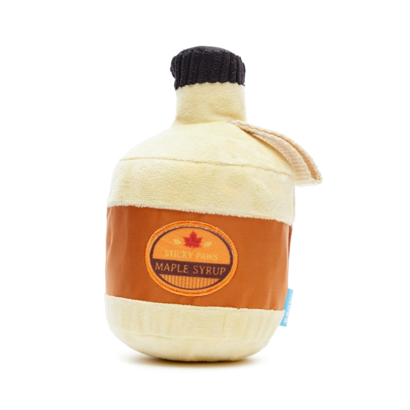 Would you like some pancakes with that syrup? If your pup rips into this syrup bottle, they'll find a surprise stack inside!Small Size: 8"L x 5.25"D x 5.75"H Medium/Large Size: 4.25"L x 4.25"D x 8"HFeatures: Rip N' Reveal Surprise Pancake Toy Inside! Crazy