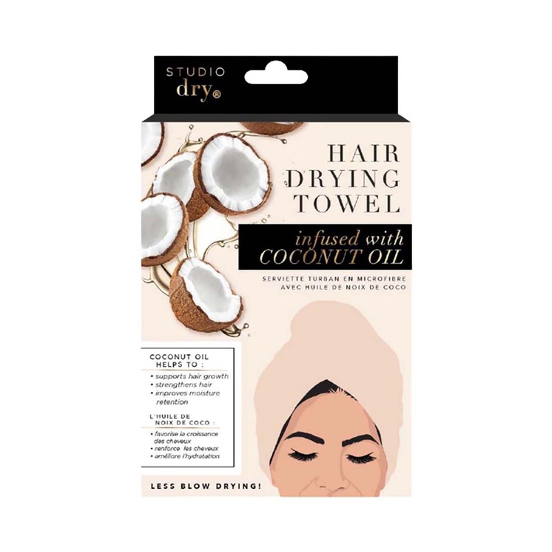 Studio Dry Turban Hair Towel Infused with Coconut Oil - White - 100% Polyester