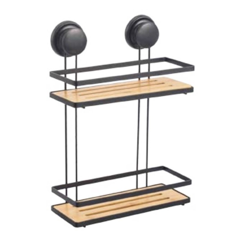 Two Tier Black Metal and Bamboo Suction Organizer 10x5x16.9in