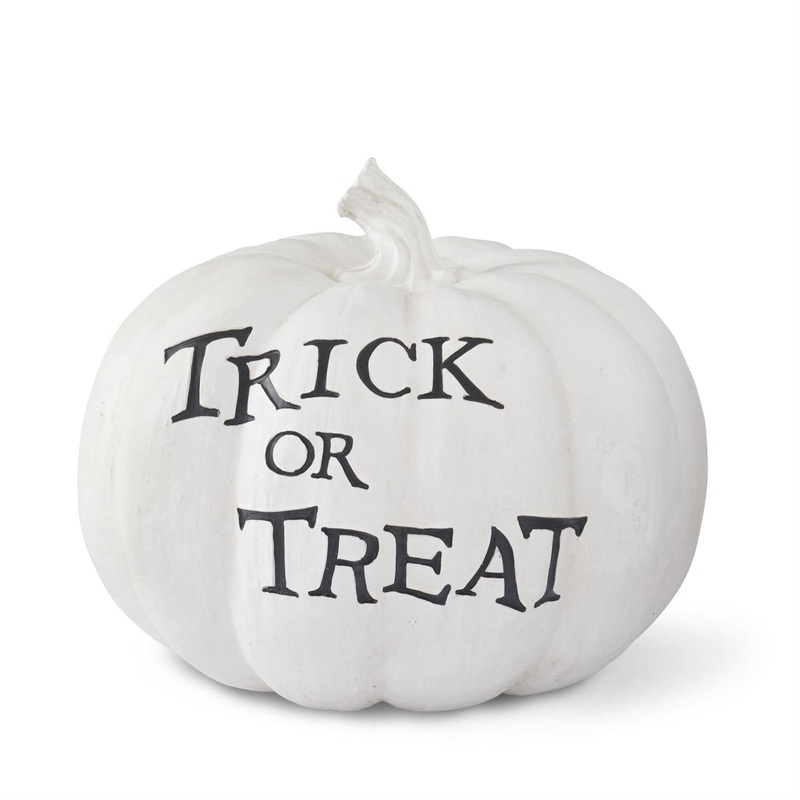 White Resin Trick Or Treat Pumpkin, 15.25