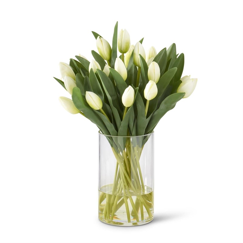 White Tulip Premade in Glass Vase w/Faux Water, 18